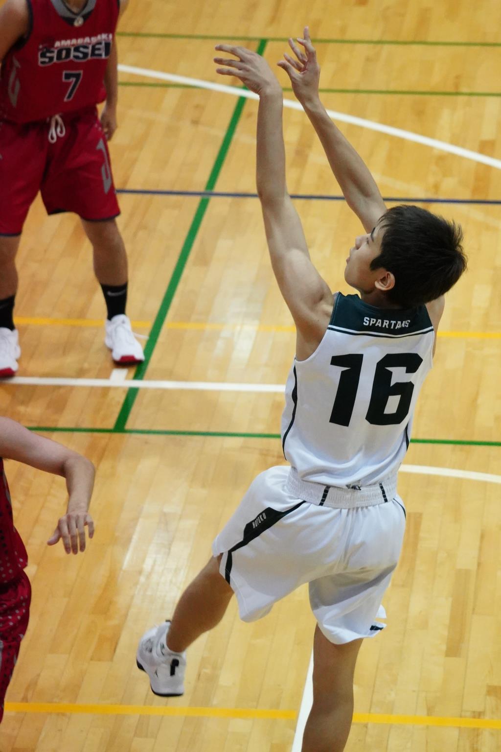 タイミング良く決め、ディフェンスでは早い寄せとプレスを利かせて尼崎双星の攻撃を抑え、リバウンドも攻守ともに支配しました。