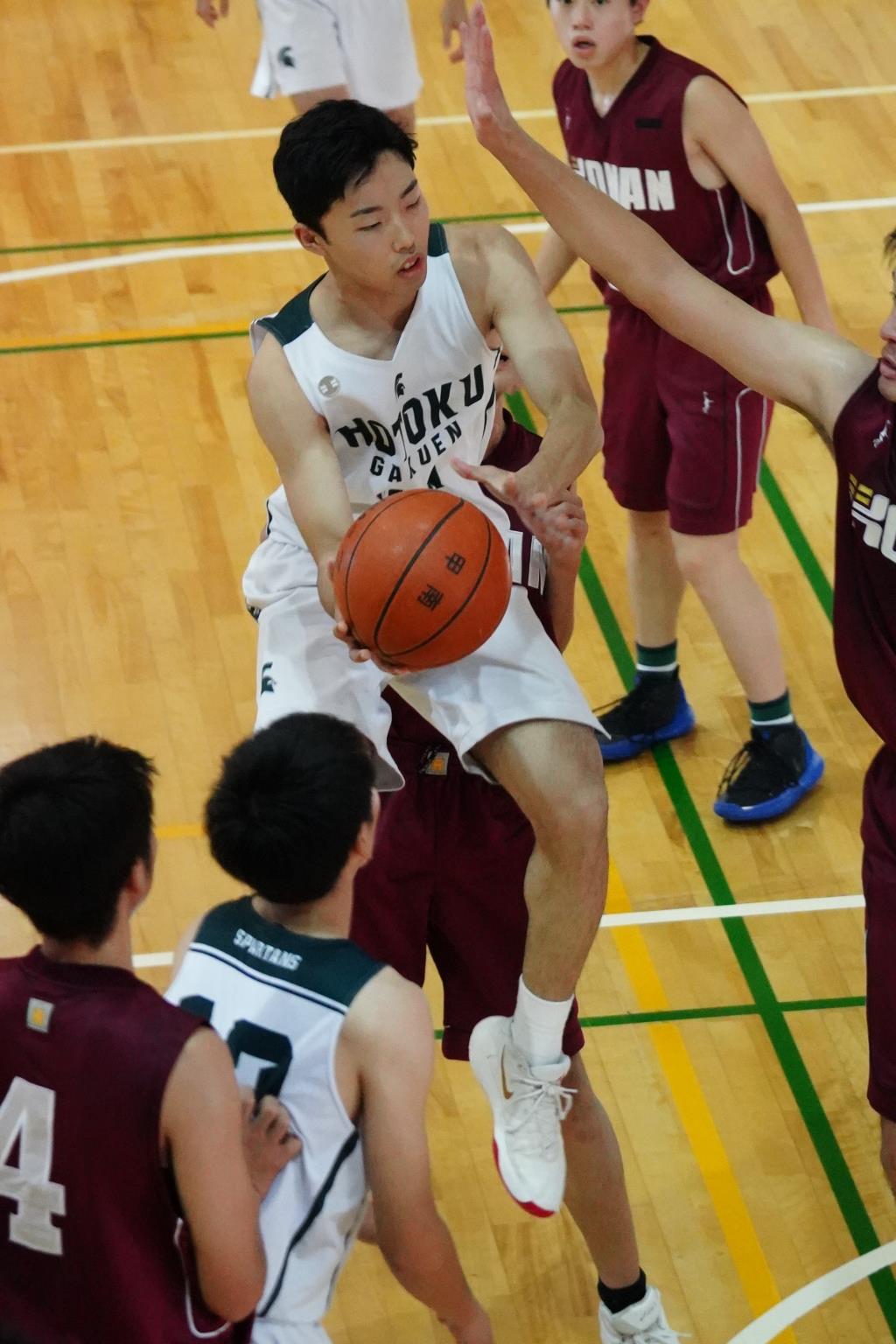 ・報徳は立ち上がりから足が良く動き、攻撃では寄せの速い尼崎双星のディフェンスを速いボール回しから躱して3Pやプルアップを