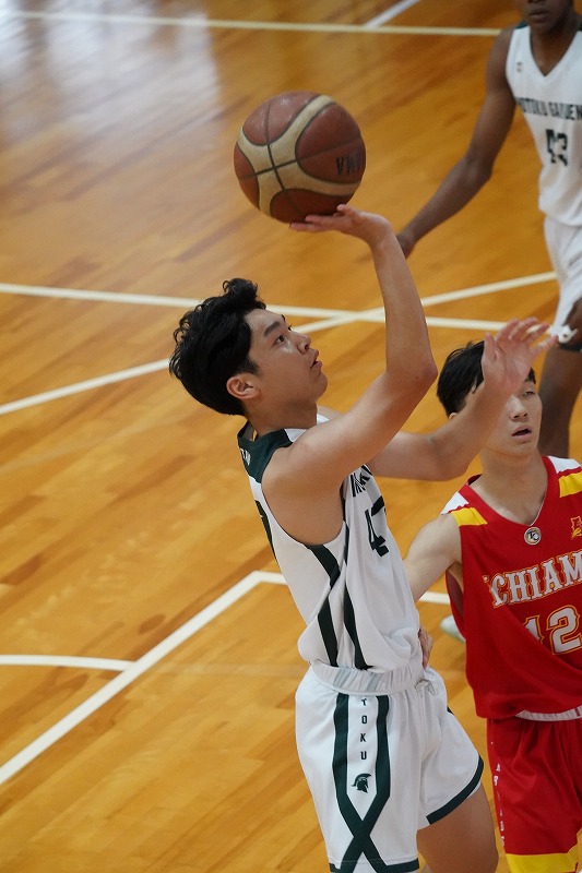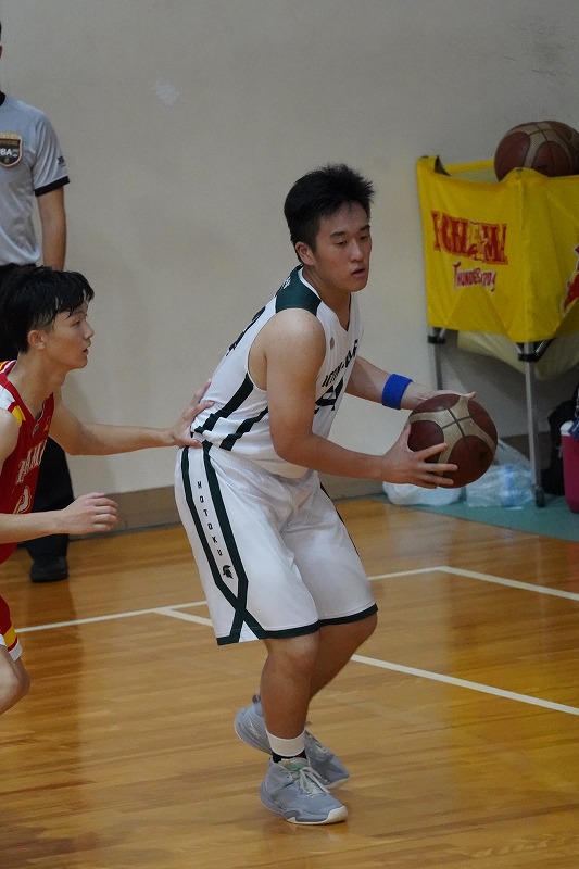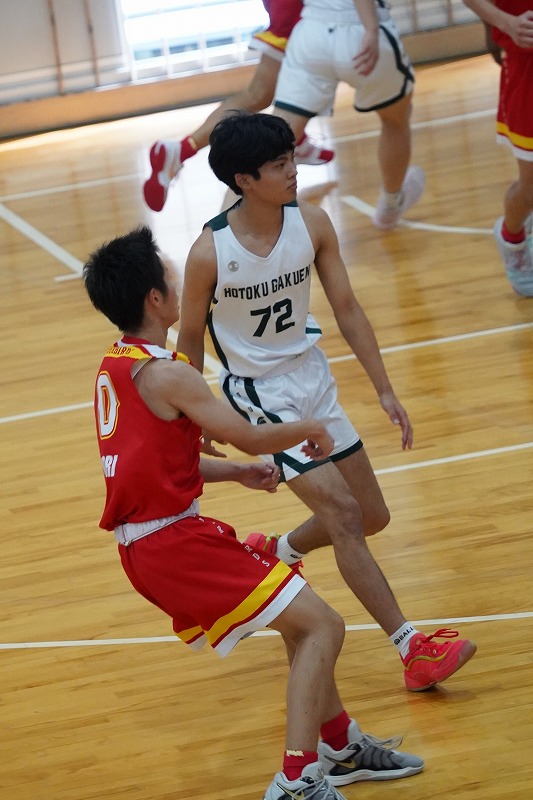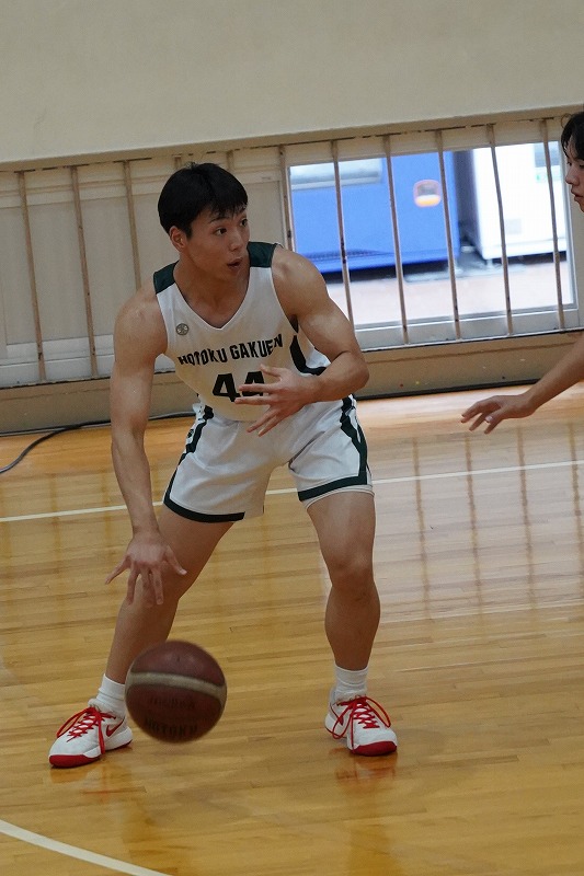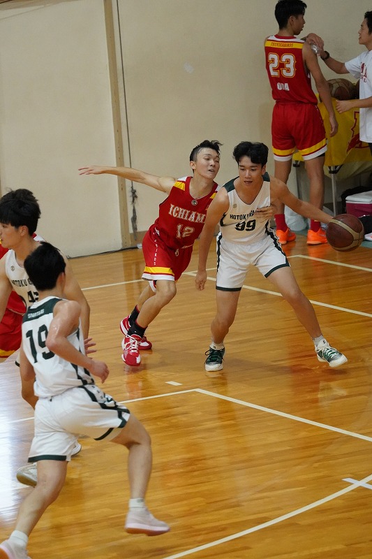 報徳はスタートから市尼崎を上回る走力と寄せの速いディフェンスで相手の攻撃を止め、積極的な1対1のドライブインや外角