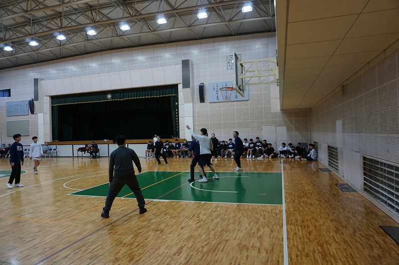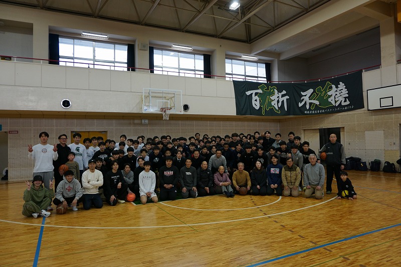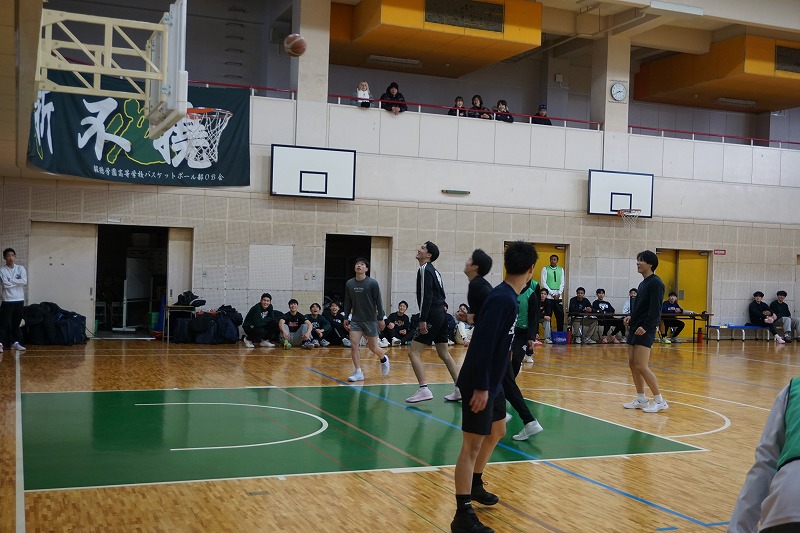 2026年OB会総会を開催しました ・2026年1月3日 母校体育館でOB会総会を開催しました ・会則に沿って議事を進め活動状況報告や会計報告を了承し、現役とOBとの懇親試合が開催され、若い学生OBのパワー溢れるプレーに押し負けました。 ・また恒例のFS大会ではたくさんの賞品を前に、ディフェンスが入り牽制と集中が入り乱れたシューテングとなりました。