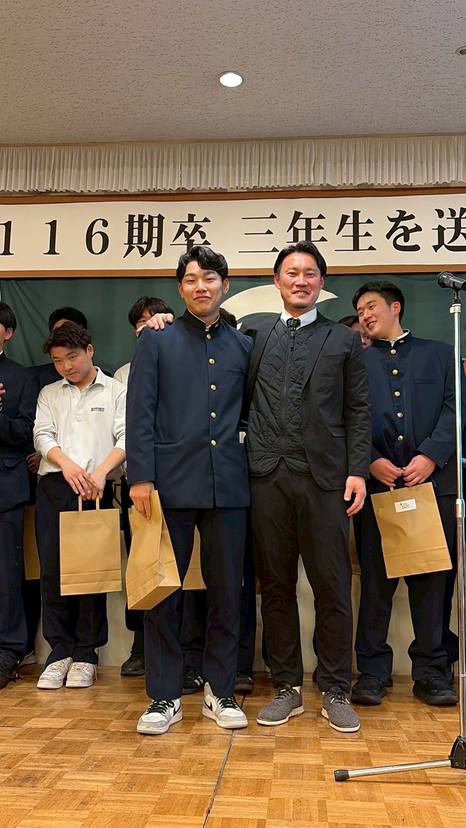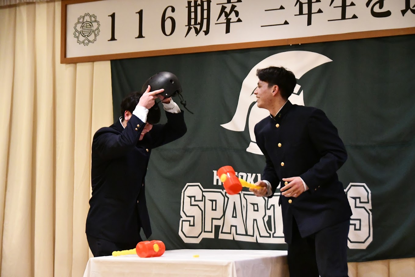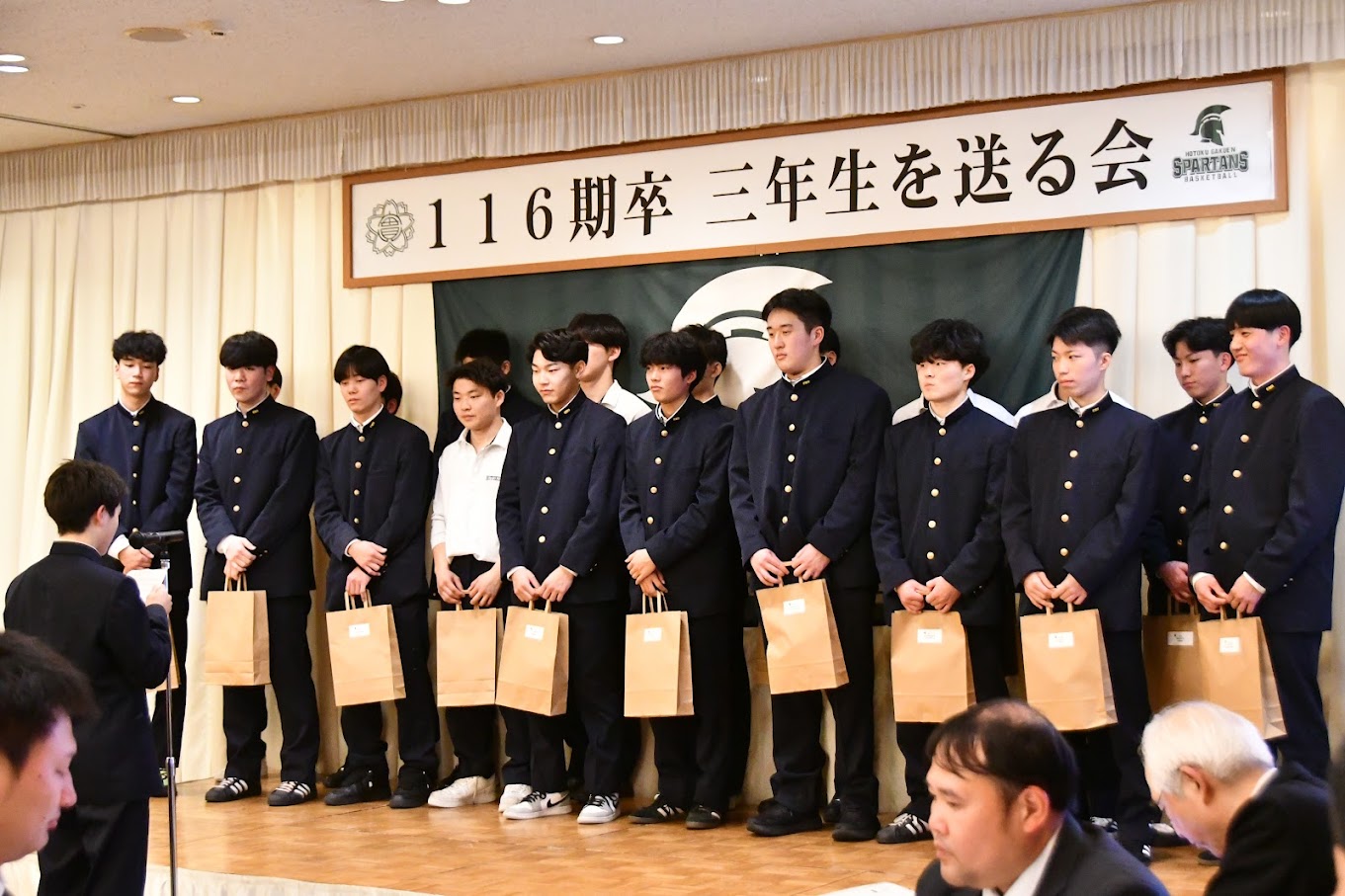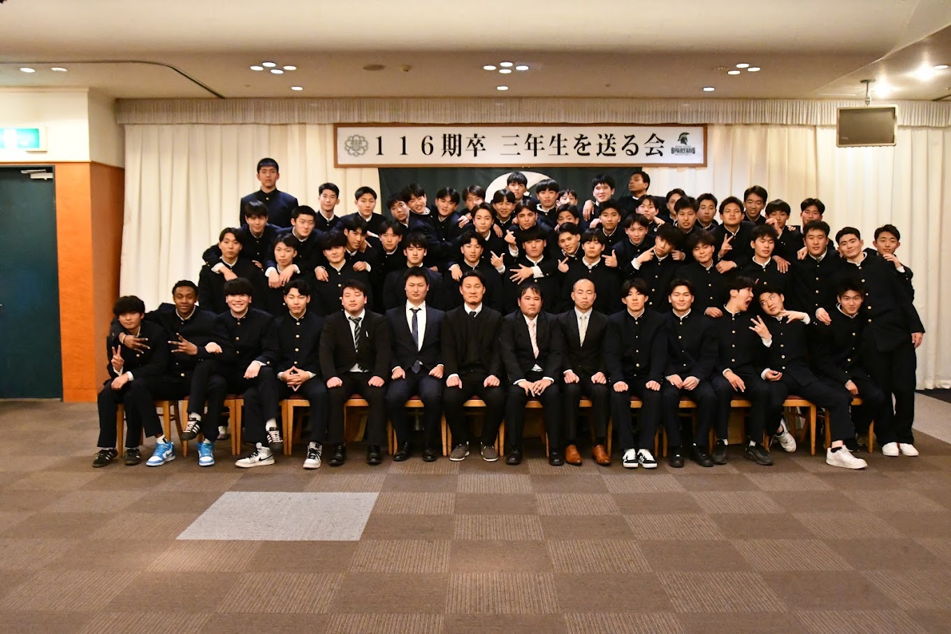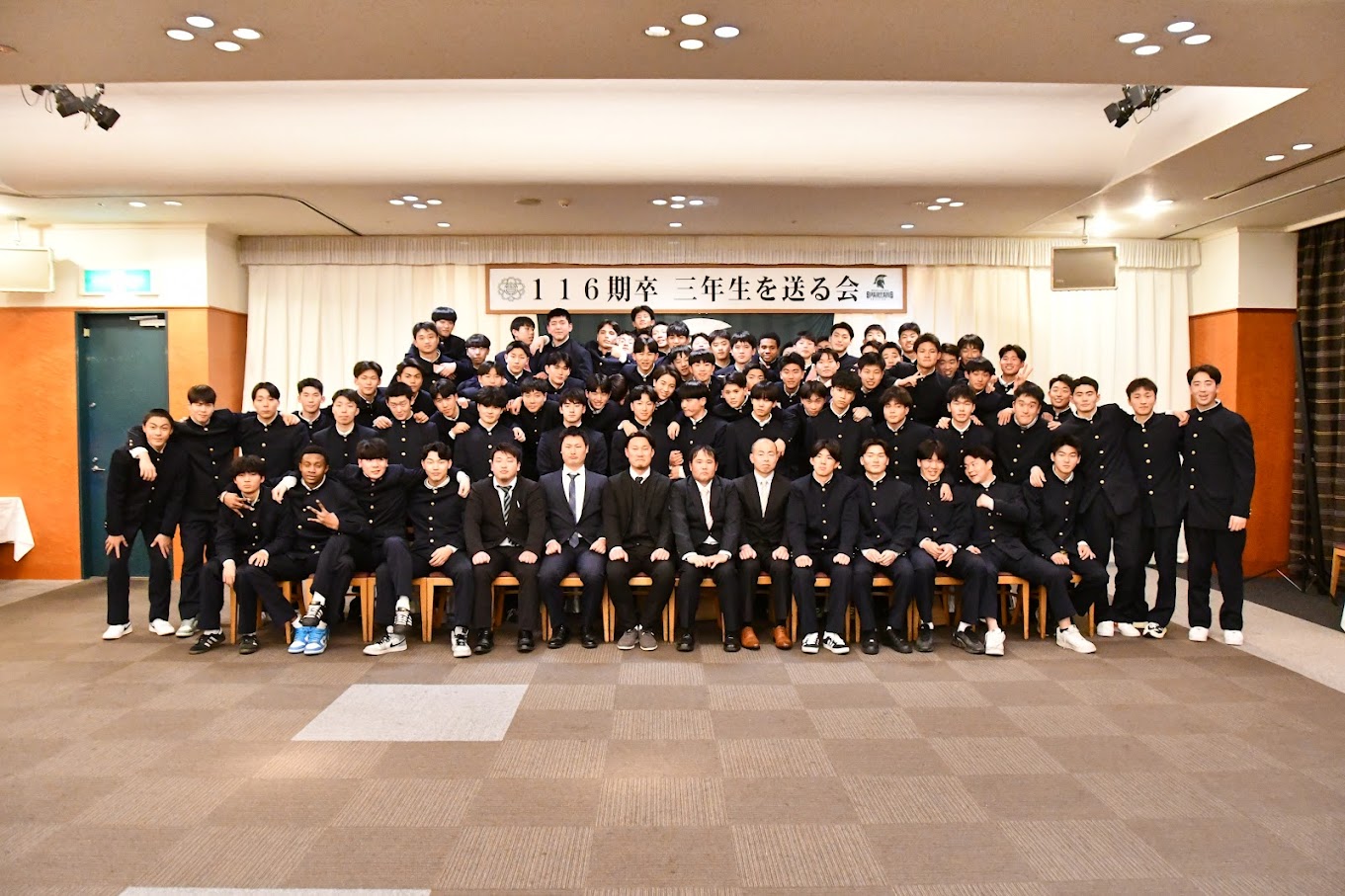 116期卒業生を送る会を開催しました ・2月11日 神戸神仙閣で116期卒業生を送る会を開催し、卒業生19名をはじめ先生方、1.2年生、保護者やOB会役員など 146名の参加者となり、卒業生への感謝と新しいステージでの活躍を励ましました。