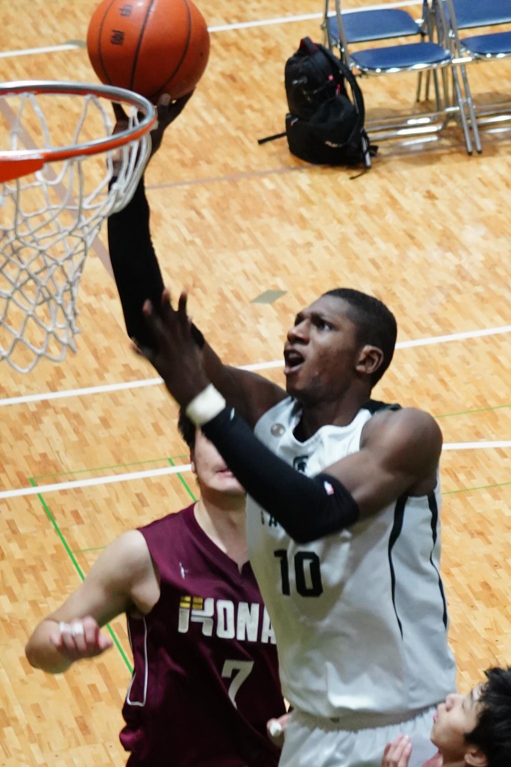 攻撃では積極的に1対1を仕掛けてディフェンスをインに集中させ、外角やプルアップシュートに繋げ、リバウンドにも勝って一気に