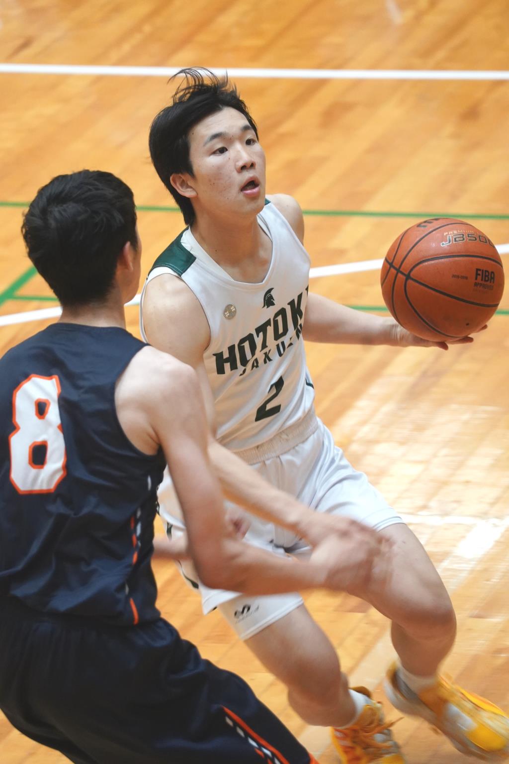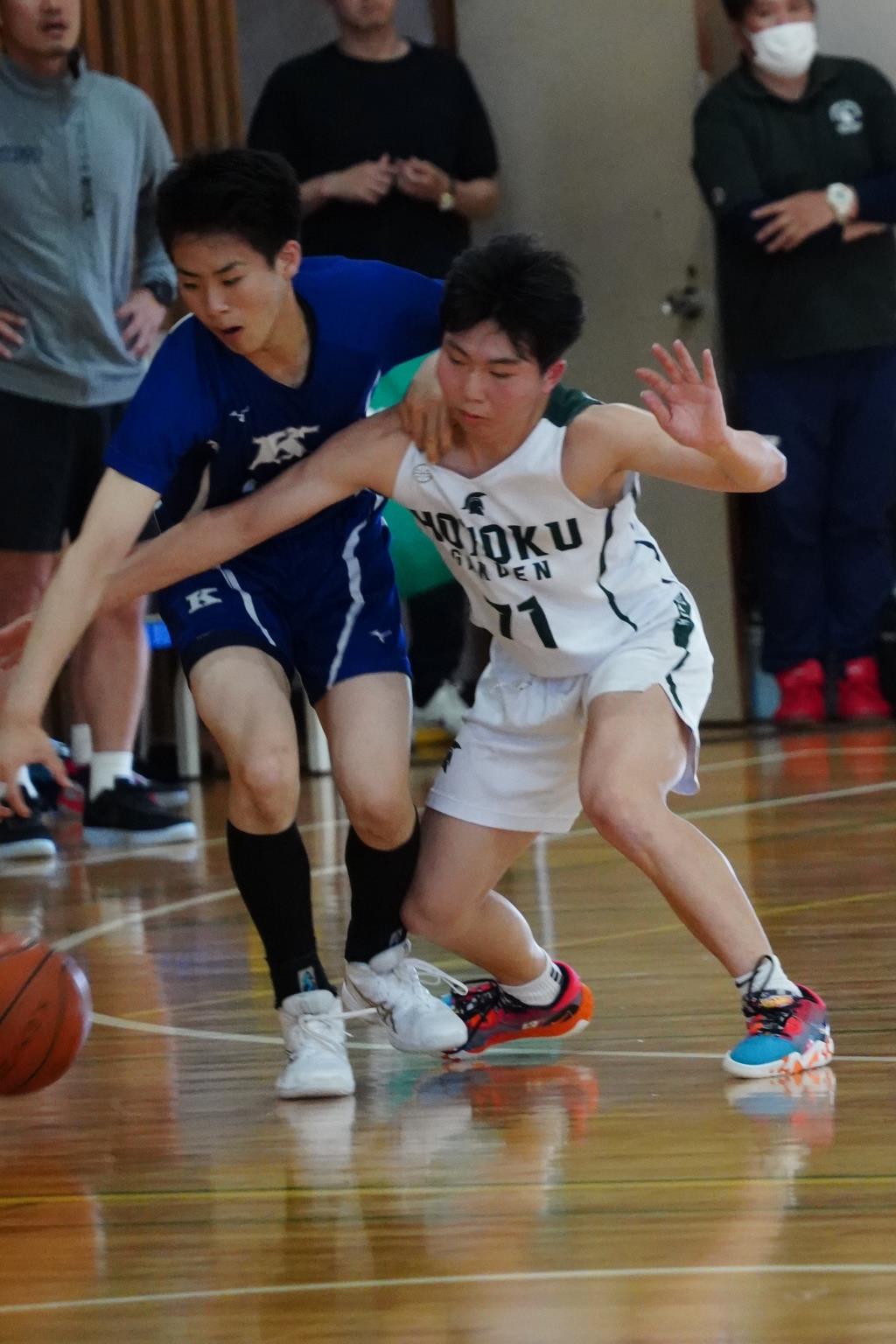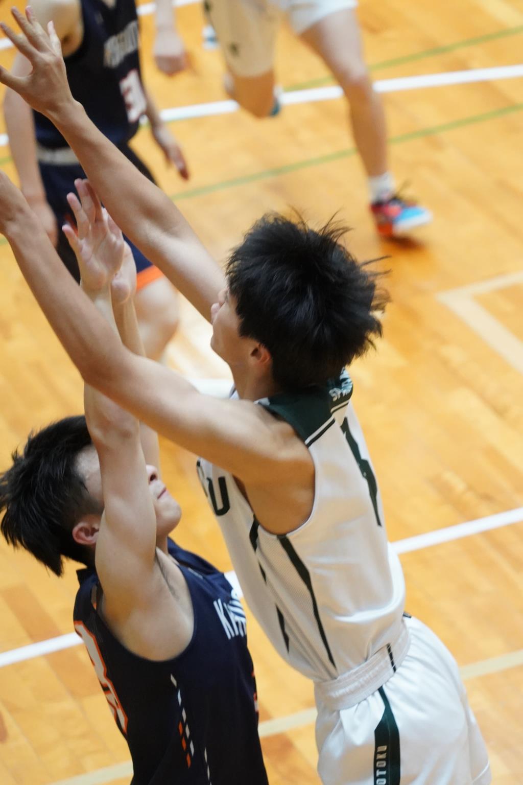 ・後半も報徳は1対1を中心、関西学院は外角シュートに加えインサイドへの切り込みも交えるなど、相互に点を奪い合う展開と