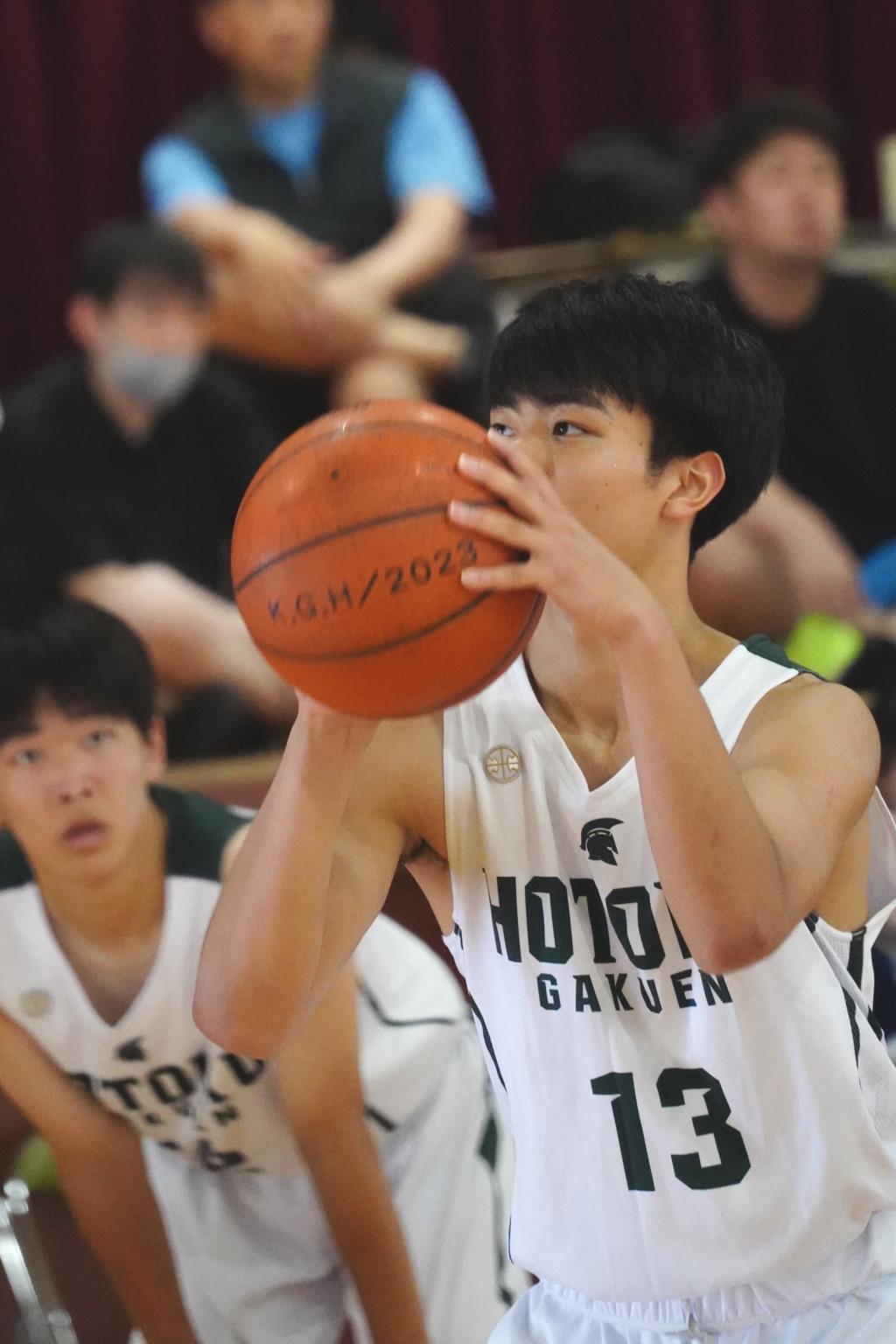 ・1Qは報徳が1対1からの仕掛けでインサイド中心に攻撃する一方、関西学院は速いパス回しからタイミングの良い3Pで応酬、