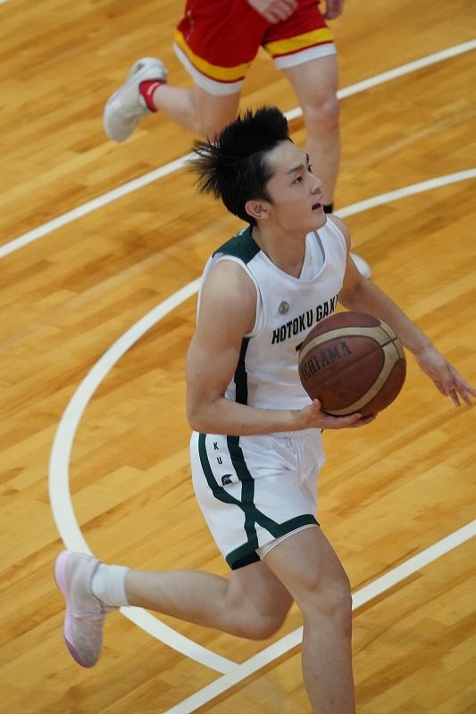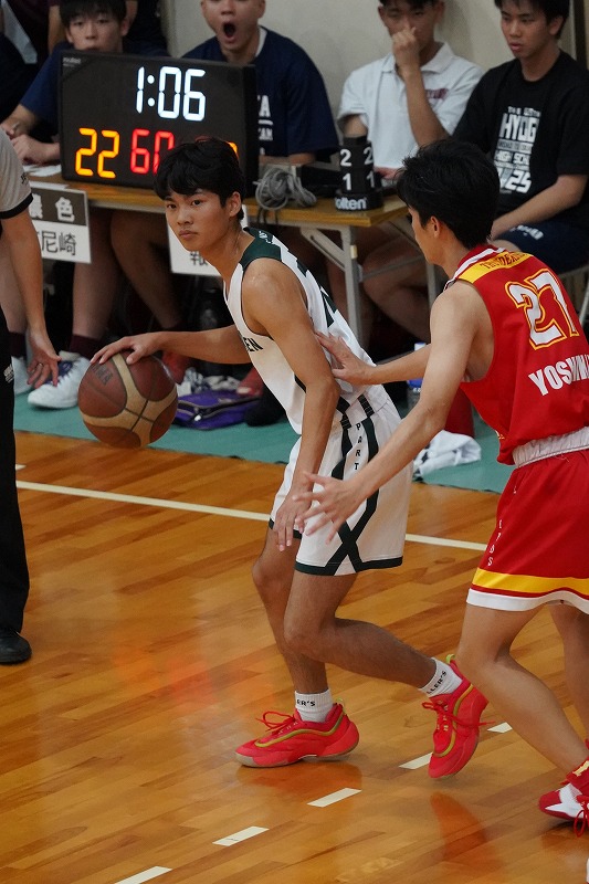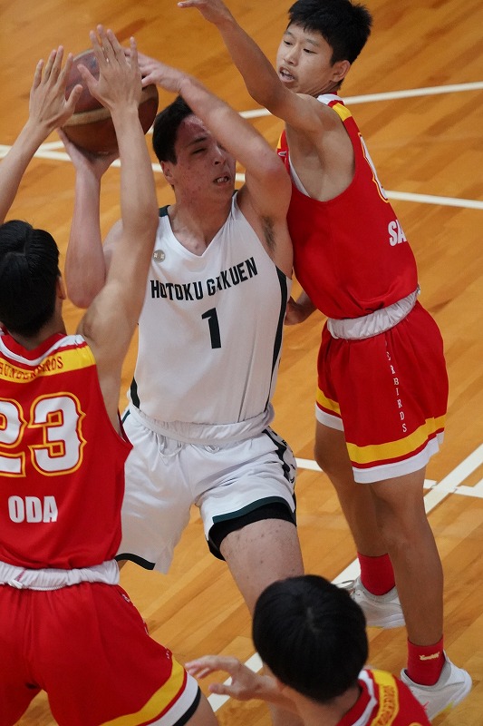 報徳はスタートから市尼崎を上回る走力と寄せの速いディフェンスで相手の攻撃を止め、積極的な1対1のドライブインや外角